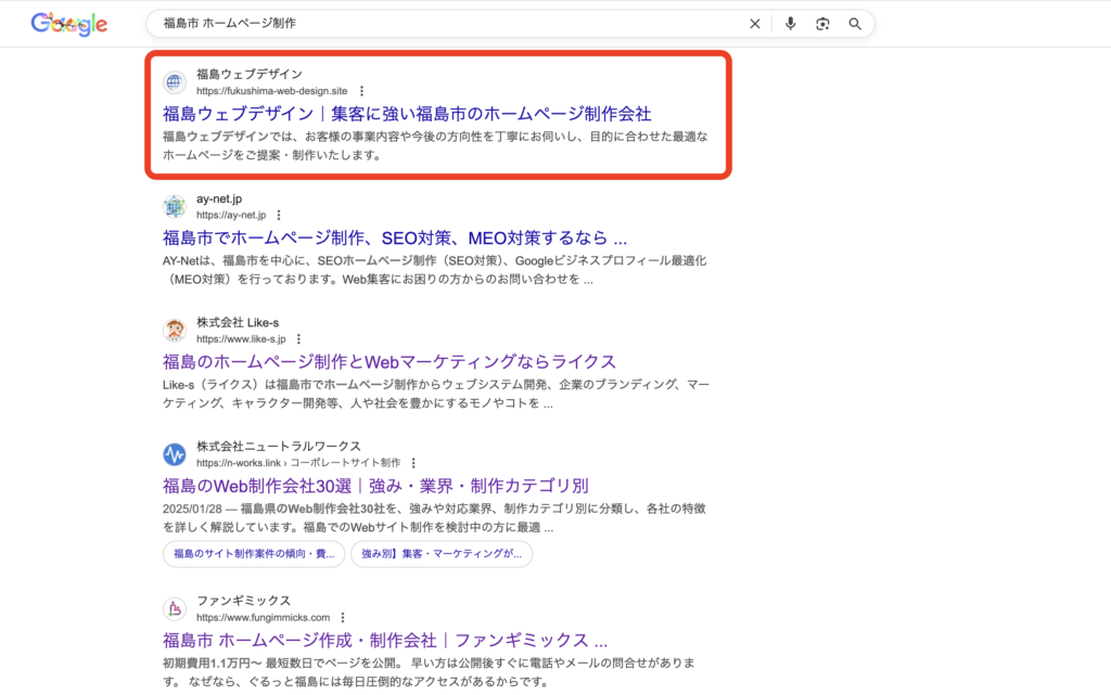 「福島市×ホームページ制作」でSEO1位を獲得しました
